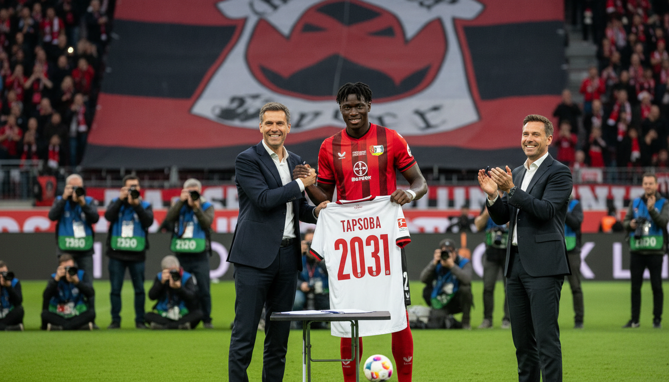 Edmond Tapsoba has committed his immediate future to Bayer Leverkusen by signing a contract extension that will keep the Burkinabè centre-back at the club until 2031. The new deal, confirmed by Leverkusen, secures a key member of their defensive unit as the club prepares for another campaign of domestic and European competition.