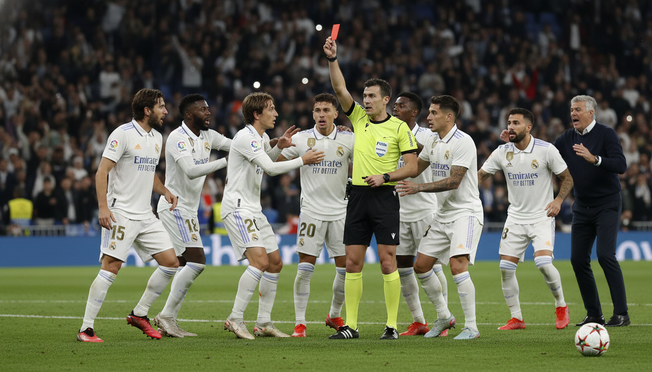 England midfielder Jude Bellingham expressed visible frustration on the pitch after Eduardo Camavinga was shown a second yellow and subsequently sent off, a decision that provoked a heated response from several Real Madrid players and staff. The dismissal, which occurred with the game finely balanced, triggered animated scenes on the touchline and produced disciplinary consequences that will affect the club into the next season. Real’s coaching staff and players argued the timing and justification of the card, saying it changed the course of a tightly contested match.